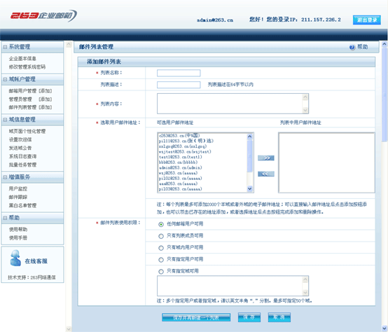 填写完整其他信息后点击“保存”保存此邮件列表,点击“保存并再新建一个列表”会将此列表保存后再进入新建邮件列表页面。