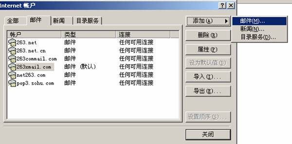点击"帐户"之后,选择“添加”按钮,选择“邮件”,如下图: