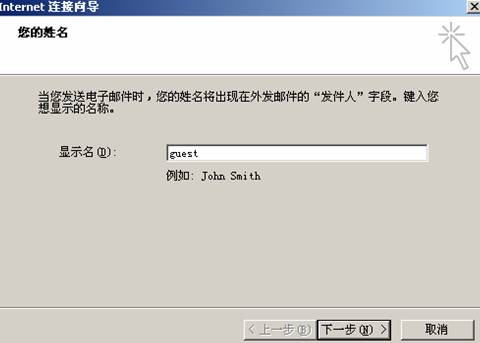 出现下列对话框,填写“显示名”,例如您的姓名是guest ,则填写“guest”: